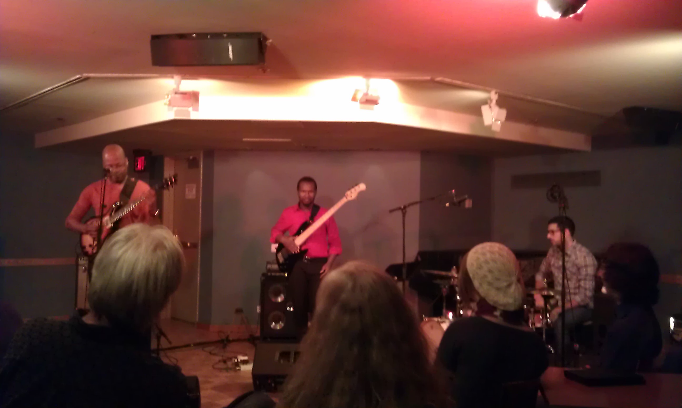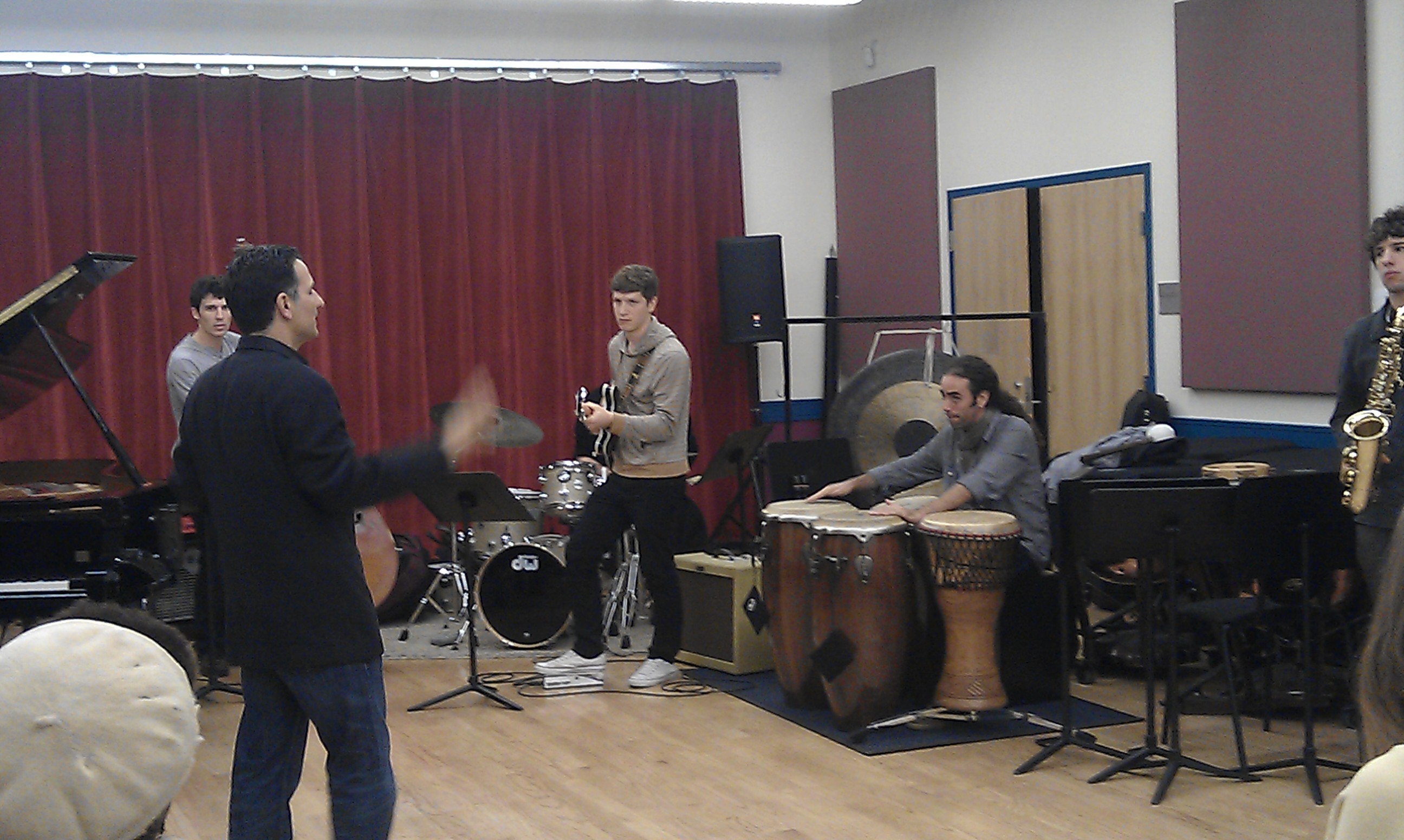Woensdagochtend (10 oktober) had ik de bus terug naar Boston en kwam ik net op tijd voor het laaste half uurtje van Herman Hamptons klas. De jongens uit dat ensemble zijn super, en ik heb het gevoel dat ik meer met ze moet doen. Dat gaat komen. We doen instrumentale nummers zoals Jazz crimes van Joshua Redman, peace van Horace Silver en Jingles van Montgomery. Daarna ging ik snel door naar de workshop voor Global Jazz en toen naar het concert van Marco Pignataro, Marcello Pellitteri, George Garzone en Riccado del Fra. Daarna ben ik als een malle naar Scullers gefietst. Ik weet niet meer precies waarom, maar iets in me voelde dat ik moest gaan. Ik arriveerde bij het laaste nummer van Donny McCaslin en Jason Lindner. Geweldige muzikanten, wat een energie. Ik had nog steeds mn tas bij me, de NYC rugzak… Ik werd voorgesteld aan Jasons neef en diens vrouw we dronken wat. Daarna heb ik met Jason nog een paar uur gepraat en wat tv gekeken (waaronder “boer zoekt vrouw” op uitzending gemist op de ipad, in het kader van de internationalisering..).