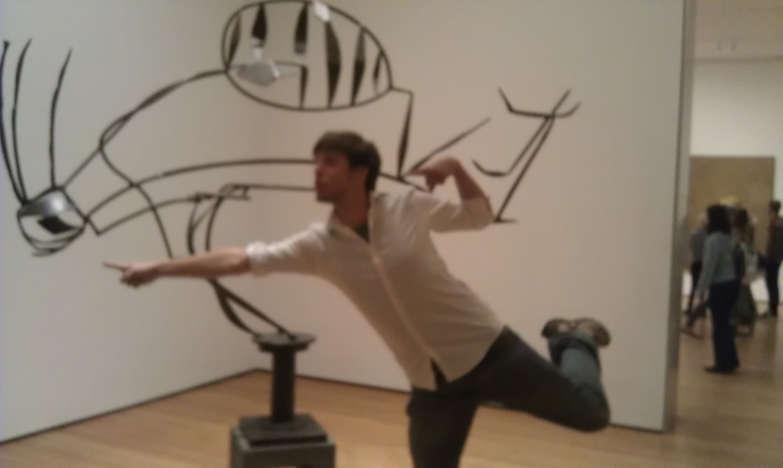 Maandags ben ik met Jeroen naar het museum gegaan, ik was best moe van de dagen ervoor, maar het was belangrijk om nog effe af te spreken voor JS weer naar Nederland zou gaan. We spraken af bij het MoMa en we hebben onwijs veel lol gehad bij alle bizarre moderne kunst. Veel rare foto’s gemaakt. Die je hieronder wel ziet… Inmiddels was het avond en belde Richard me, of ik bij hem wederom kwam eten, wellicht. Ook Aaron Goldberg had gebeld dat hij gestressed was omdat zijn computer dood was en hij bezig was met het jazz for Obama concert. Ik zou hem helpen met het een en ander, dus zei ik JS gedag en ging ik naar Carnegie Hall. Daar waren de vrienden van Aaron aan het flyeren voor het Obama concert van de volgende dag. Met een stapel Flyers in mijn hand hiep ik mee. Veel mensen reageerden positief en we hadden leuke smalltalk. Toen sprak een zekere John me aan en hij vertelde me dat hij betrokken was bij de Jazz Gallery. Vervolgens zei hij me dat zijn date gecancelled had en dat hij dus een extra kaartje had voor de show in Carnegy Hall. Tuurlijk wilde ik mee! The New Orleans Orchestra speelde….en vierde hun tien jarig bestaan, met speciale gasten als Bradford Marsalis en Deedee Bridgewater. Dus zat ik ineens op rij 9 , helemaal vooraan. Het was een geweldig concert en als toegift kwam de hele band door de zaal lopen – net als in New Orleans! Na het concert moest ik haasten want Joe stond te wachten bij de Village Vanguard, we gingen naar de Bigband kijken. Dat is mijn favouriet! De arrangementen van Thad Jones … zo zou ik graag leren schrijven. Dit semester volg ik ook het vak arrangeren voor 6 blazers, en volgend semester neem ik Arrangeren voor Bigband. De Vanguard bigband bestond uit grote namen, en muzikanten op leeftijd, maar ze waren zo strak, zo veel swing. Geweldig. Joe was ook helemaal in zijn element.