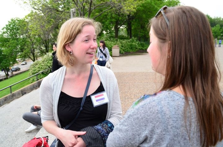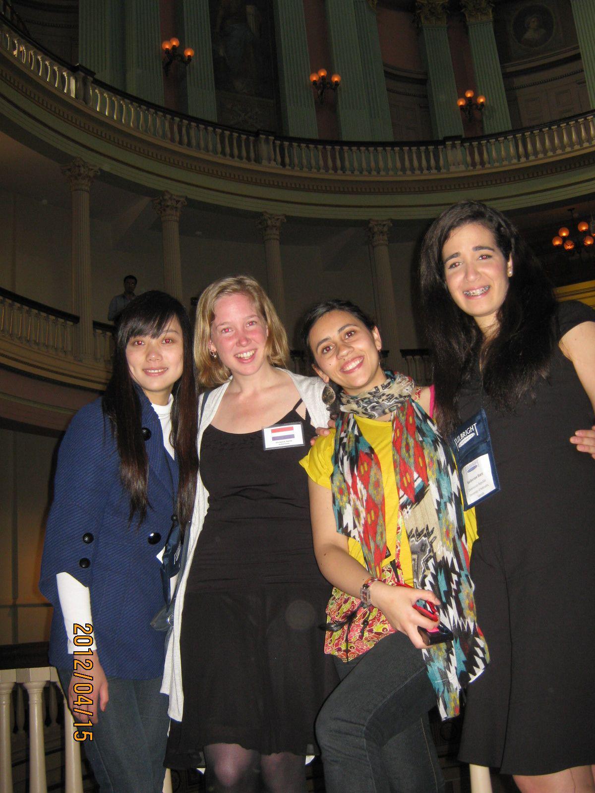 Toen was het tijd om in te checken… Het Hotel wat Fulbright geregeld had was geweldig, een voormalig treinstation, heel erg mooi. En we konden meteen de bus in naar de openingsceremonie. Deze werd gehouden in het St Louis Museum of National History, en daar kregen we een lezing en diner. De dagen die daarop volgden waren super interessant. Er waren 150 fubrighters van over de hele wereld, die met elkaar in debat gingen over van alles en nog wat… want tja – zo vertelden ze ons – tussen jullie zitten toekomstige wereld leiders… Wat doe je dan natuurlijk met zo’n grote groep met slimmeriken ?! Je houdt fake verkiezingen!! We werden ingedeeld als democraten en republikeinen en dan moesten we onze campagne leiders kiezen, en debatteren. Op deze manier leerden we over het Amerikaanse verkiezingstelsel en konden we ons inleven in de verschillende onderwerpen die hiermee gepaard gaan. Verder konden ze ons verrassen met een community service – middag, een diner bij ‘echte St Louis’ inwoners en een bustour langs de verschillende highlights van de stad (inclusief een tourguide met een rood mantelpakje en een te grote jaren 70 bril die zichzelf Jersy-tomato noemde en ‘Meet me in St. Louis” voor ons zong…)